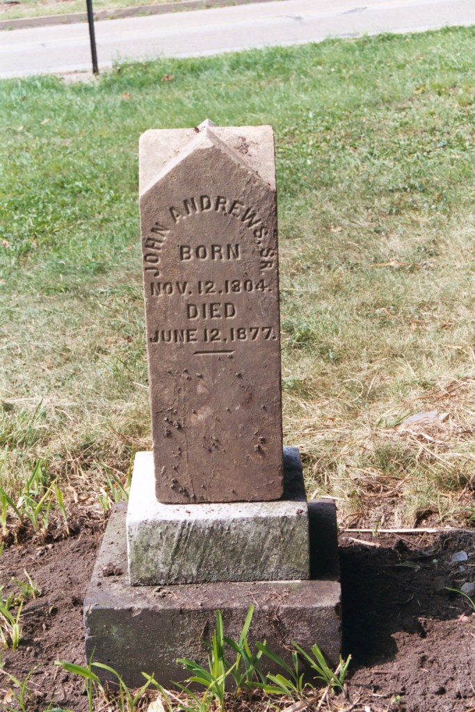 Andrews Tomb John Andrews Sr. Nov 12, 1804-Jun 12, 1877 Share Click to share on Facebook (Opens in new window) Facebook Click to share on X (Opens in new window) X Click to share on LinkedIn (Opens in new window) LinkedIn Like Loading... Related