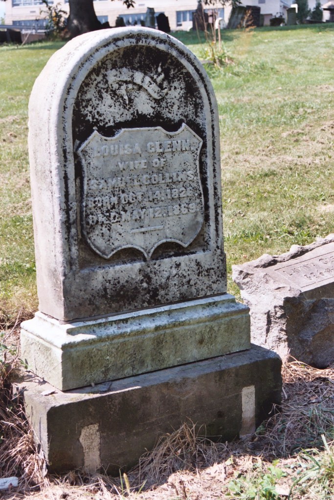 Collins Tomb Louisa Glenn wife of Samuel Collins born 14 October 1826-Died 12 May 1869 (in the Glenn plot) Share Share on Facebook (Opens in new window) Facebook Share on X (Opens in new window) X Share on LinkedIn (Opens in new window) LinkedIn Like Loading... Related
