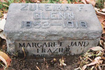 Frazier Tomb Read Frazier Profile Margaret Jane Frazier 1898-1900 – same stone as Zuleika F. Glenn Share Click to share on Facebook (Opens in new window) Facebook Click to share on X (Opens in new window) X Click to share on LinkedIn (Opens in new window) LinkedIn Like Loading... Related