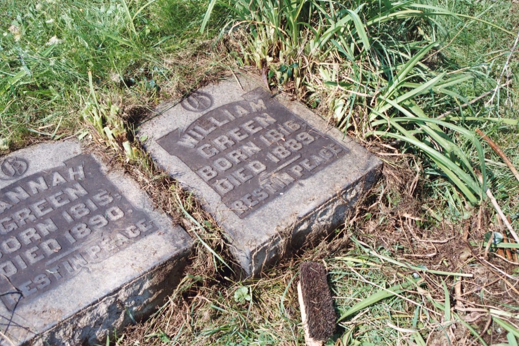 Green Tomb Hannah Green born 1815-died 1890 Rest in Peace William Green born 1816-died 1889 Rest in Peace Share Click to share on Facebook (Opens in new window) Facebook Click to share on X (Opens in new window) X Click to share on LinkedIn (Opens in new window) LinkedIn Like Loading... Related