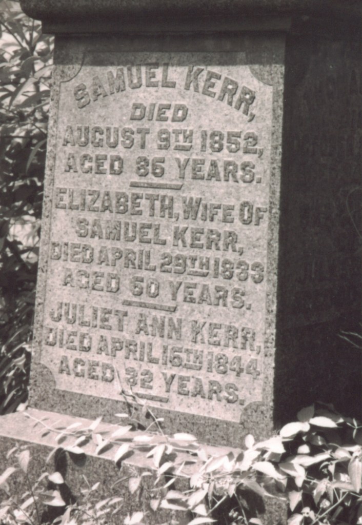 Juliet Ann Kerr died Apr 16, 1844 aged 32 yr