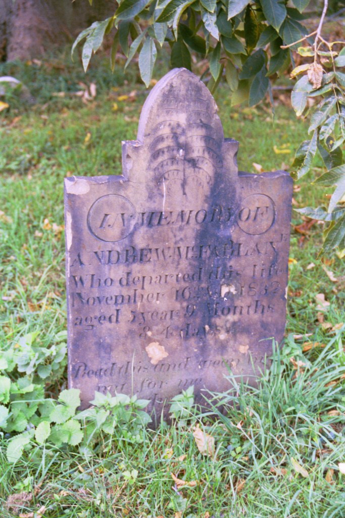 Andrew McFarlane “In Memory of Andrew McFarlane who departed this life Nov 16, 1832 A D aged 5 years, 9 months, 4 days