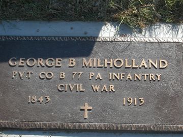 George B. Milholland July 31, 1913 Pvt. Co. B 77th Pa Vol