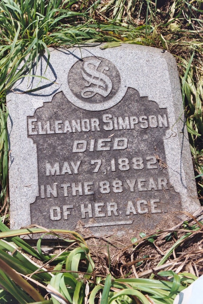 Simpson Tomb Elleanor Simpson died May 7, 1882 in the 88 yr of her age Isaac Simpson died Dec. 4, 1856 in the 53 year of his age Harvey Simpson (rest of the stone is buried) Mary E. Simpson Apr 22, 1845-Jul 24, 1913 Jeannie C. Simpson Jun 21, 1843-Apr 29, 1926 Share Click to share on Facebook (Opens in new window) Facebook Click to share on X (Opens in new window) X Click to share on LinkedIn (Opens in new window) LinkedIn Like Loading... Related