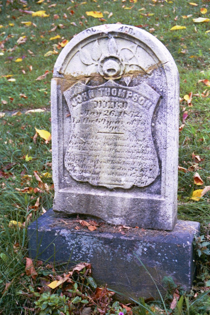 Thompson Tomb Read Thompson Profile Maggie Jane Thompson born Jun 9, 1874 died Mar 10, 1888 Jane Thompson died Sep 26, 1881 aged 85 years – Our Mother John Thompson died May 26, 1862 in his 60 year of age – Our Father Robert Thompson 1833-1892 – Husband Share Click to share on Facebook (Opens in new window) Facebook Click to share on X (Opens in new window) X Click to share on LinkedIn (Opens in new window) LinkedIn Like Loading... Related